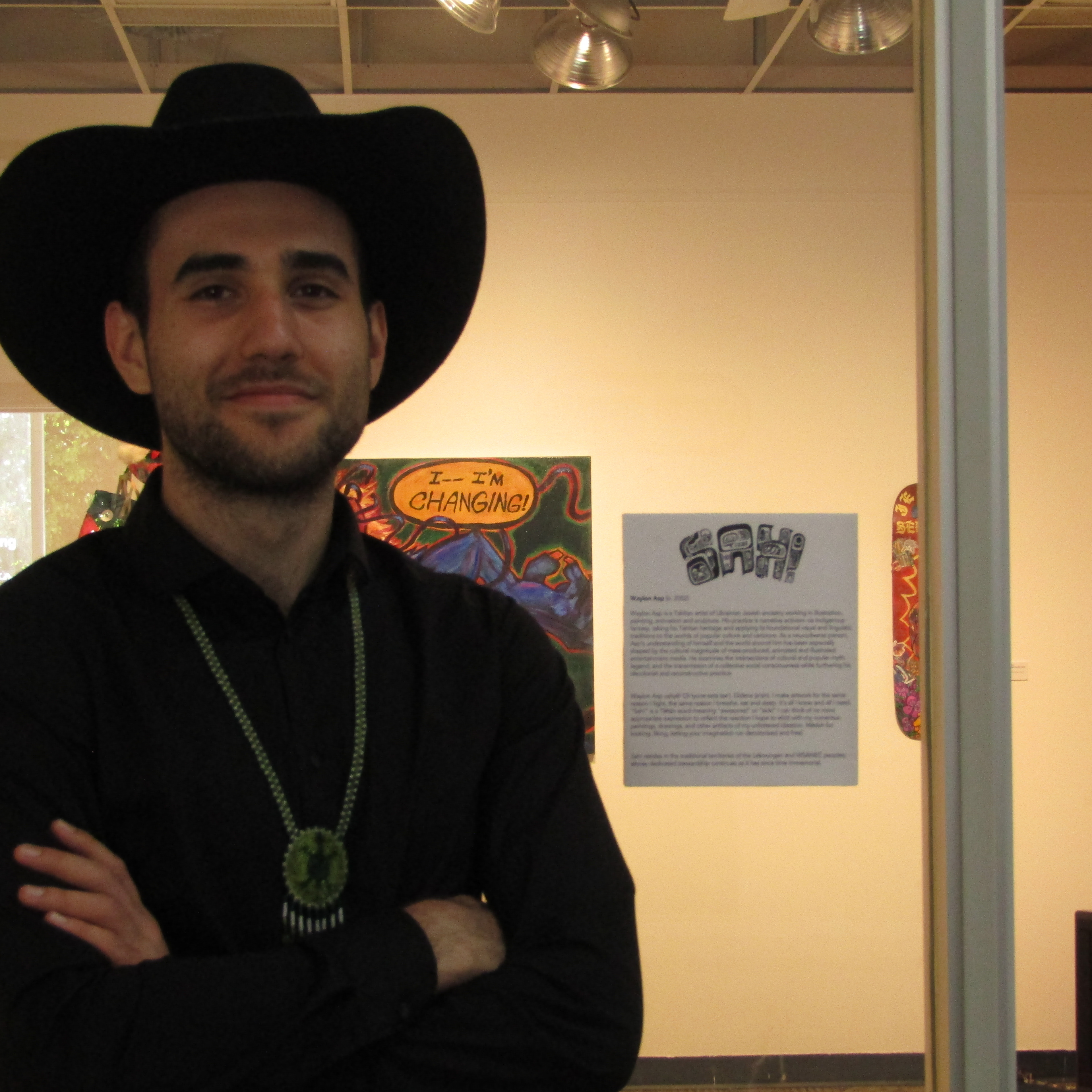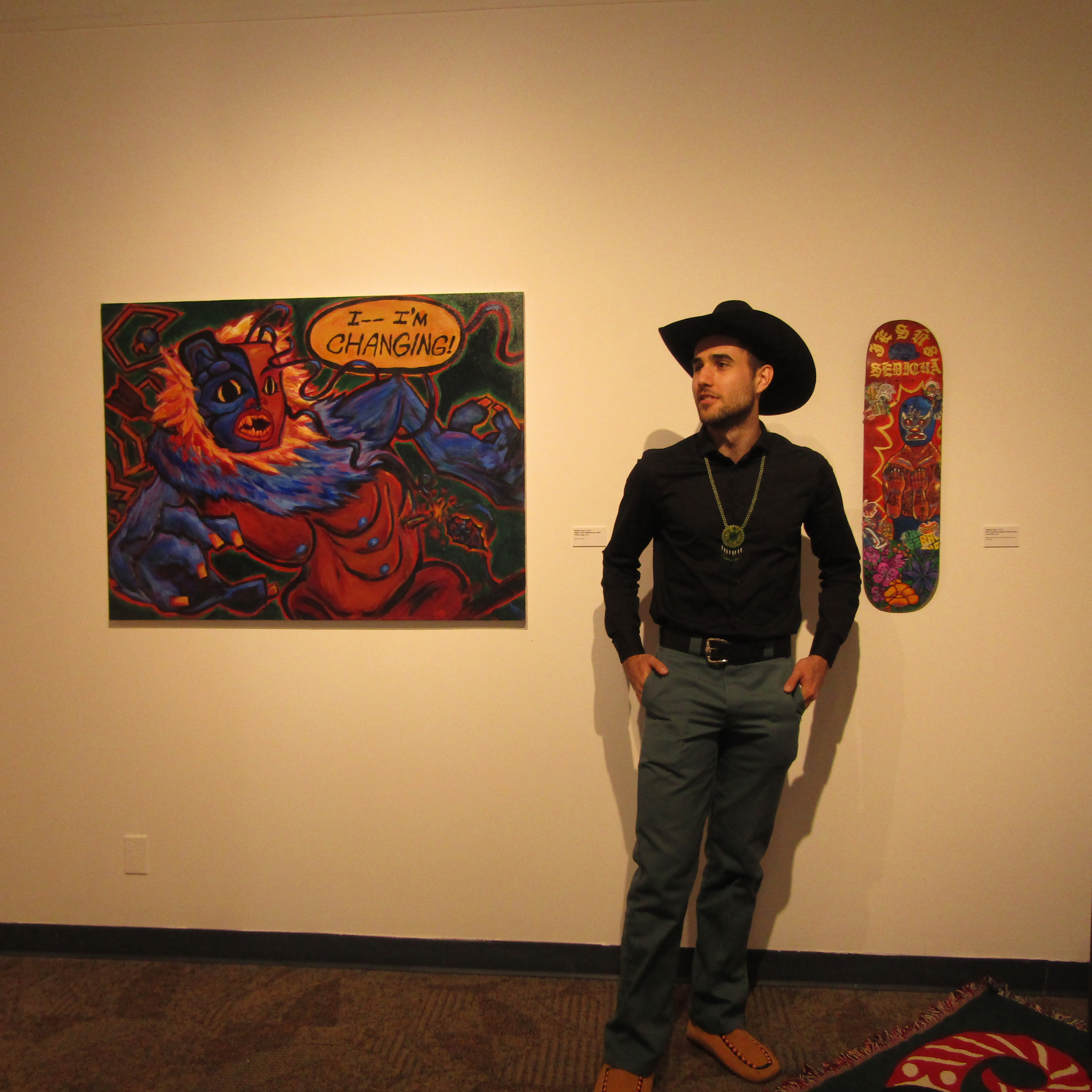 "Waylon Asp ushyē! Ch’iyone esta tse’i. Didene ja’sini. I make artwork for the same reason I fight, the same reason I breathe, eat and sleep. It’s all I know and all I need. “Sah!” is a Tāłtān word meaning “awesome!” or “sick!” I can think of no more appropriate expression to reflect the reaction I hope to elicit with my numerous paintings, drawings, and other artifacts of my unfettered ideation. Mēduh for looking, liking, letting your imagination run decolonized and free!"